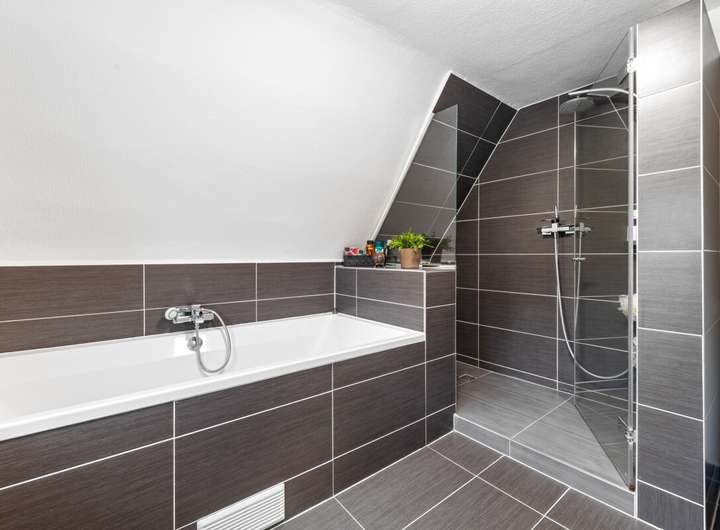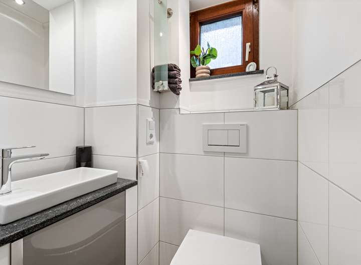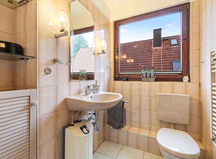 saniertes Duschbad und separates WC im Erdgeschoss aus 2015, saniertes Vollbad im Obergeschoss aus 2015 mit separarten WC aus ca. 1985