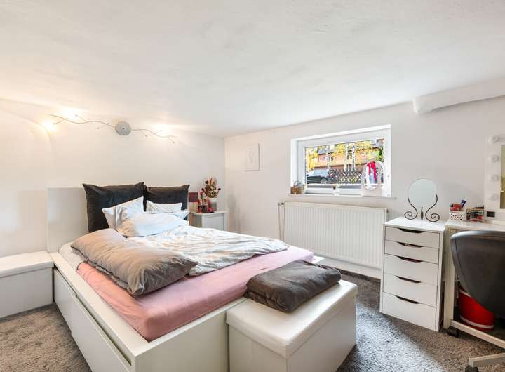 Im Keller steht zusätzliche Nutzfläche zur Verfügung, darunter ein ausgebautes Zimmer, das sich als Hobbyraum eignet. Im Zuge der Erweiterung wurde das gesamte Haus im Jahr 2015 kernsaniert.