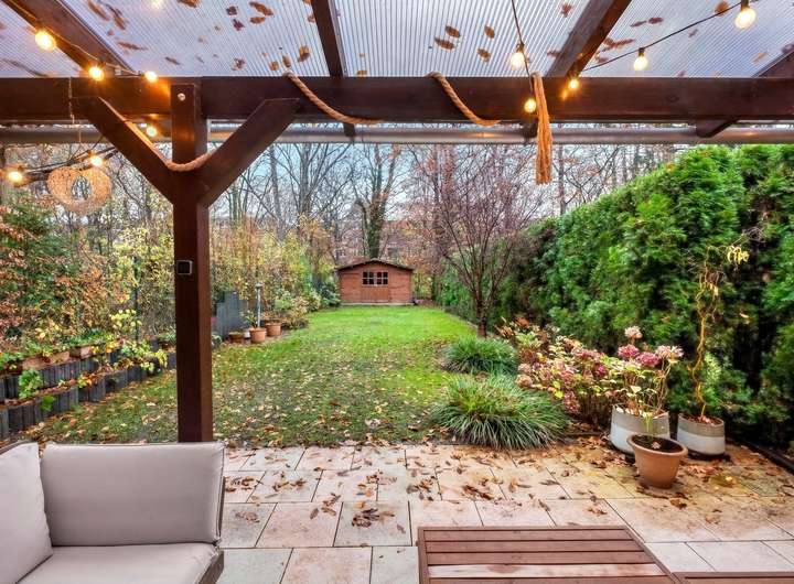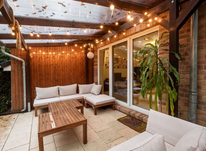 Der liebevoll angelegte Garten und die geschützte Terrasse laden zum Entspannen und Genießen ein – ein perfekter Rückzugsort nach einem langen Tag.