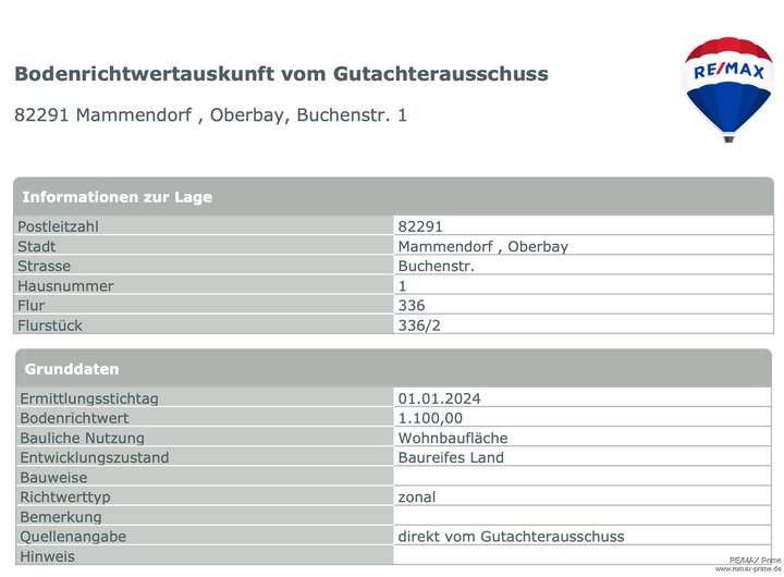 Alle Angaben sind ohne Gewähr und basieren ausschließlich auf Informationen, die uns von unseren Auftraggebern zur Verfügung gestellt wurden. Wir übernehmen keine Gewähr für die Vollständigkeit, Richtigkeit und Aktualität dieser Angaben. Die Angaben zu einer möglichen Bebauung müssen im Vorfeld durch einen Bauantrag geprüft und durch die jeweiligen Ämter der Gemeinde und Landratsamt genehmigt werden. Wir übernehmen für eine Genehmigung keine Gewähr. Die Grunderwerbssteuer, Notar- und Grundbuchkosten sind vom Käufer zu tragen.