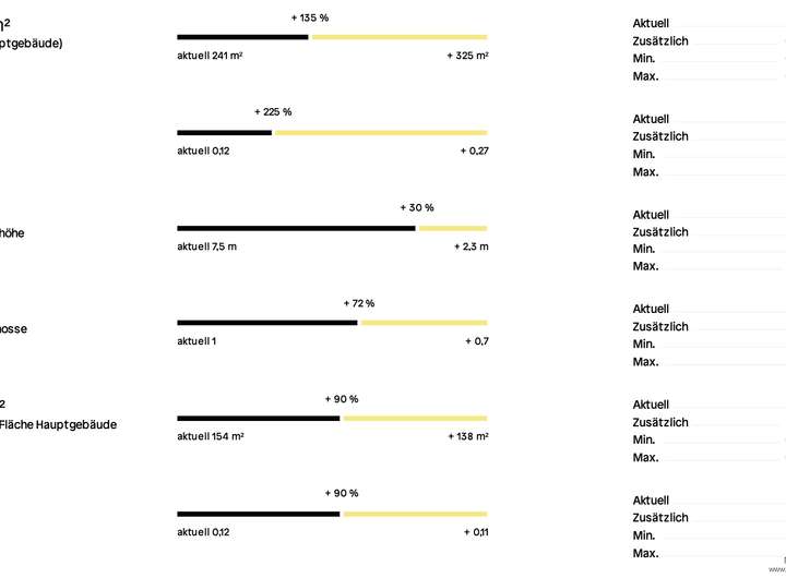 Das bestehende Architektenkonzept, das aktuell in Abstimmung mit der Gemeinde ist, kann auf dieser Grundlage verfeinert und weiterentwickelt werden. Eine potenzielle Erhöhung der BGF um +135 % gegenüber dem Bestandsgebäude eröffnet signifikante wirtschaftliche Spielräume für ein renditestarkes Neubauprojekt.