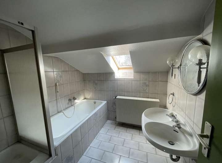 Im Dachgeschoss befinden sich zwei Bäder, die jeweils mit einer Badewanne, einer Dusche, einem WC sowie einem Waschbecken ausgestattet sind.