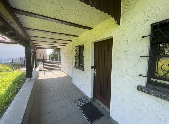 Sowohl vom Wohn- und Essbereich als auch von der Küche gelangen Sie auf die großzügige Terrasse. Diese ist perfekt für sommerliche Grillabende und entspannte Nachmittage im Freien. Seitlich der Terrasse befindet sich ein kleiner Abstellraum.