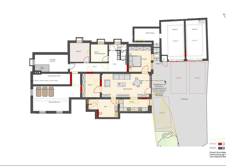 Für Kapitalanleger besteht die Option, die Immobilie in drei eigenständige Einheiten umzuwandeln. Die Eigentümer haben dazu bereits Pläne von einem Architekten erstellen lassen.