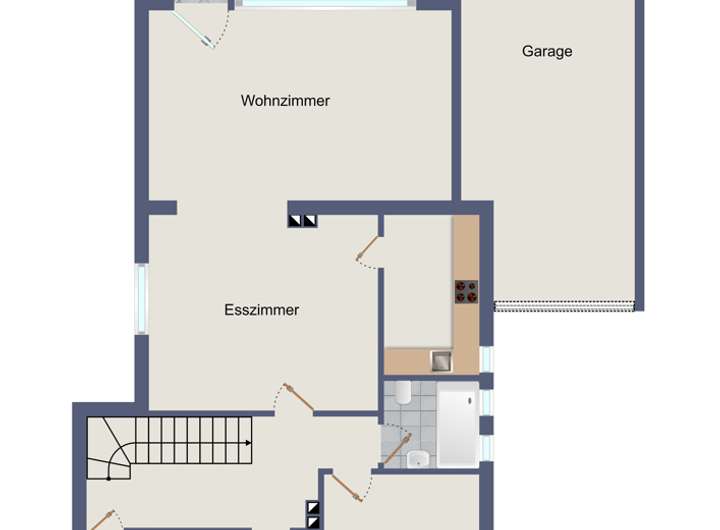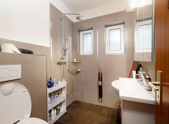 Die erst ca. 2022 modernisierte Küche überzeugt mit zeitlosem Design und macht Kochen zum Vergnügen. Ein modernes Duschbad im Erdgeschoss sowie ein separates WC im Dachgeschoss bieten eine praktische Aufteilung für den Familienalltag.