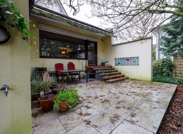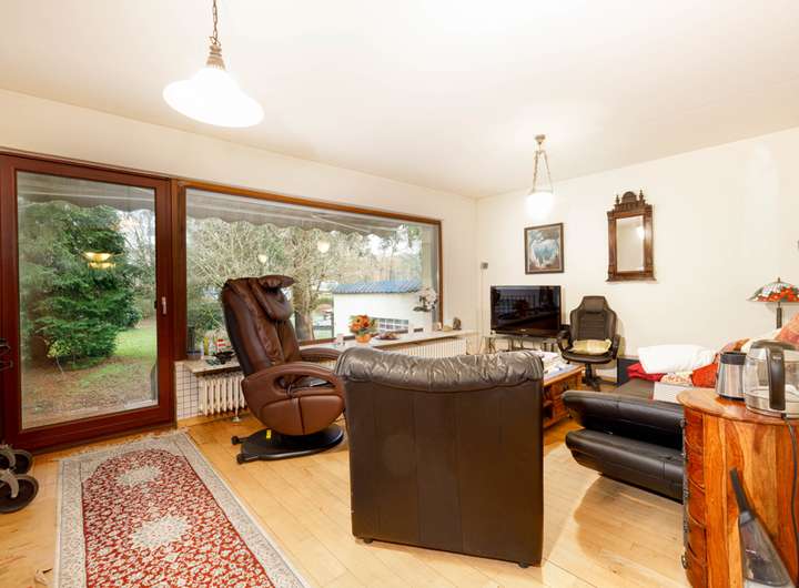 Mit ca. 122,5 m² Wohnfläche und sechs gut geschnittenen Zimmern ist das Haus ideal auf die Bedürfnisse von Familien zugeschnitten. Der durchdachte Grundriss wird durch einen ca. 22 m² großen Anbau im Erdgeschoss sowie im Keller ergänzt, der etwa 1974 realisiert wurde und den Wohnkomfort deutlich erhöht. Im Erdgeschoss erwartet Sie der Wohn- und Essbereich welcher einen direkten Zugang zur Terrasse ermöglicht. Elektrisch steuerbare Rollläden an den Terrassenfenstern sorgen für zusätzlichen Komfort und Privatsphäre.