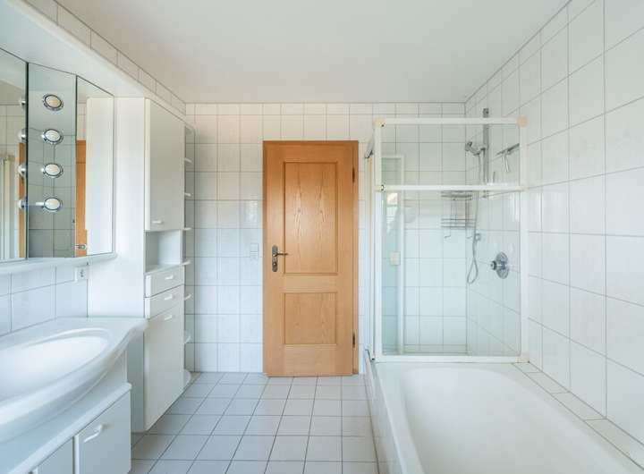 Weiterhin stehen ein Elternschlafzimmer, ein Kinderzimmer, ein helles Tageslichtbad sowie ein separates WC zur Verfügung.