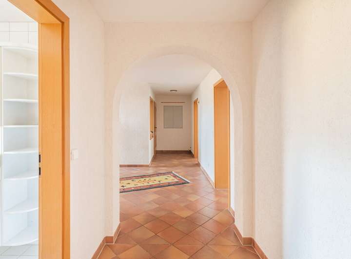 Im Haus wurden überwiegend hochwertige Echtholzparkettböden verlegt, die den Wohn- und Schlafbereichen eine warme und ansprechende Atmosphäre verleihen. Die Flure sowie die Sanitärbereiche sind mit langlebigen, hellen Fliesen ausgestattet, welche sich pflegeleicht zeigen und das Gesamtbild harmonisch ergänzen.