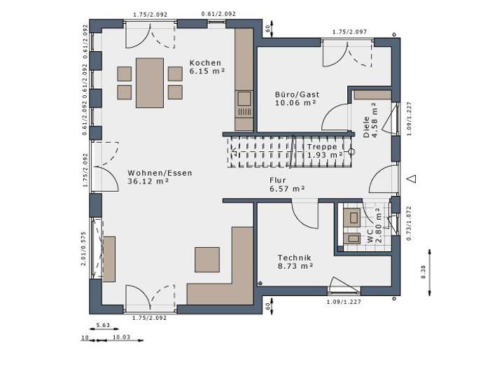 Diesem Angebot liegt die beliebte Schwabenhaus-Ausbaustufe "Fast-Vollendet Plus" zugrunde. Diese kann selbstverständlich noch entsprechend Ihrer geplanten Eigenleistungen angepasst werden.
