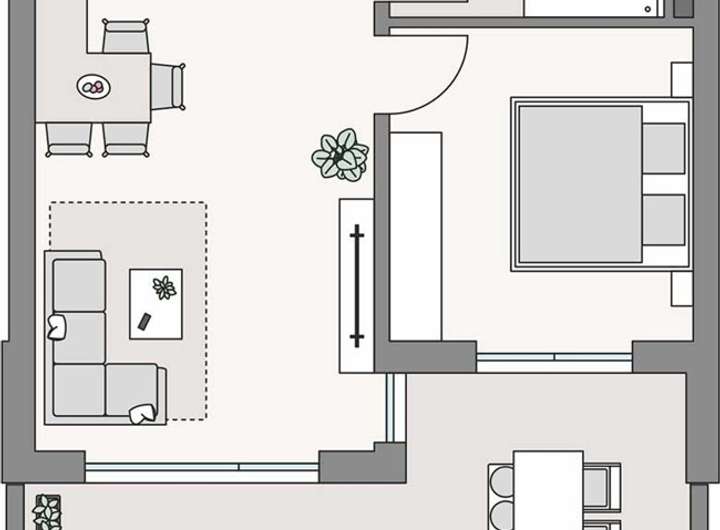 Die 2,5-Zimmer-Erdgeschosswohnung im Haus A ist wie folgt aufgeteilt:
