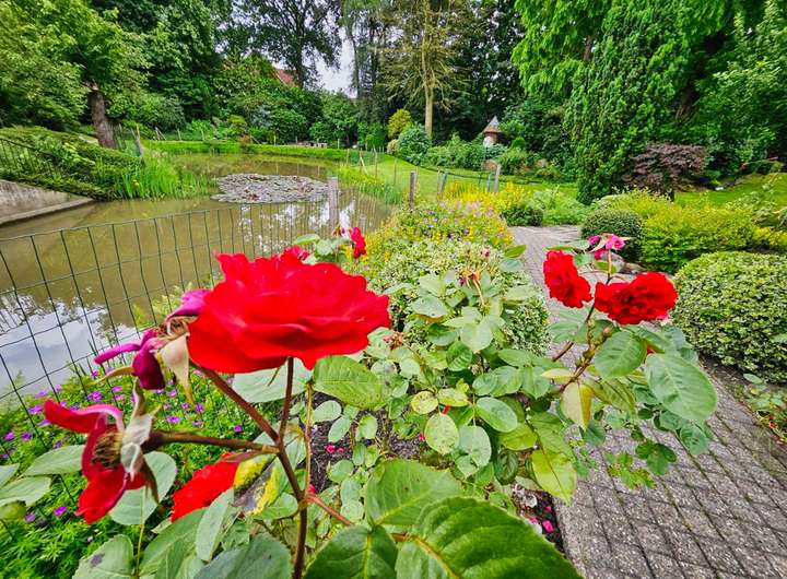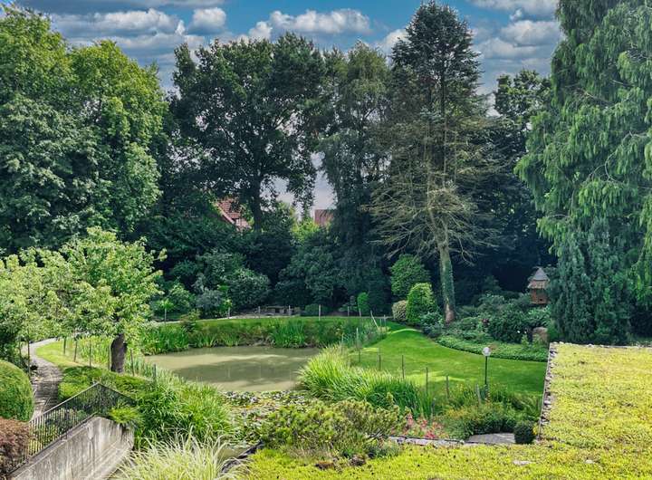 - parkähnlicher Garten mit Naturteich und Baumbestand