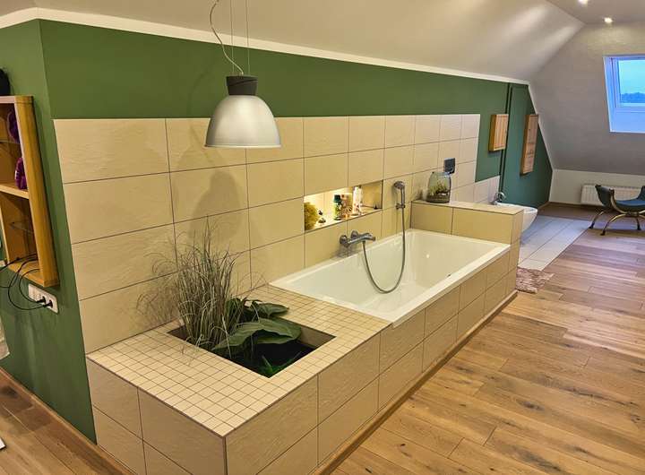 "Am besten gefallen mir an meinem Haus der Garten und die kurzen Wege zu Geschäften, Ärzten und Co.", sagt die Eigentümerin über Ihr schickes Zweifamilienhaus, das sich in zentraler Lage von Cloppenburg befindet. Wenn man sich die Bilder des Gartens mit dem Naturteich und dem alten Baumbestand ansieht, kann man das sehr gut nachvollziehen. Natürlich wollen wir Ihnen aber nicht die restlichen Highlights des Hauses verschweigen. Im Erdgeschoss gibt es unter anderem ein Wohnzimmer mit Kamin, eine Sauna mit angrenzendem Ruheraum und eine großzügige mit Glas und Markise überdachte Terrasse. Die zweite Wohnung, die sich über das 1. Obergeschoss und das Dachgeschoss erstreckt, bietet ebenfalls eine Sauna, eine großzügige Wohn-Essküche mit offenem Kamin und Zugang zur Dachterrasse sowie eine Galerie. Die Beheizung der Immobilie erfolgt mittels Gasheizung aus 2005. Die Wohnung im Erdgeschoss ist derzeit vermietet. Separate Versorgungsanschlüsse für Gas, Strom und Wasser sind gegeben. Bei Bedarf könnte man den innenliegenden Treppenaufgang zwischen EG und OG wieder aktivieren, was neue Nutzungskonzepte eröffnet.