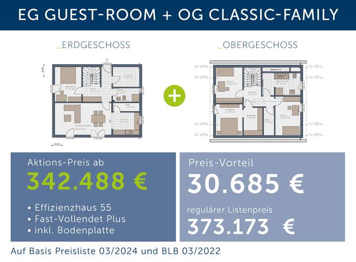 - Effizienzhaus 55 mit der Option zur Erweiterung auf Effizienzhaus 40 oder 40 Plus