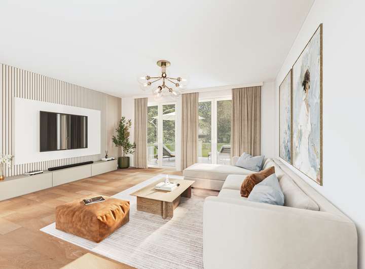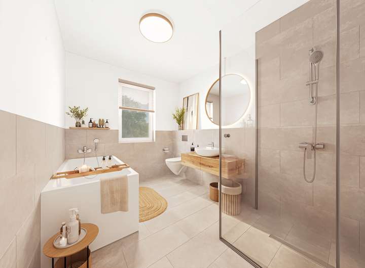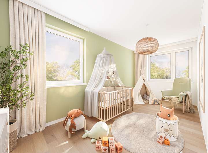 Die abgebildeten Visualisierungen sind beispielhaft und können von der späteren Ausführung abweichen. Maßgeblich sind ausschließlich die vertraglich vereinbarten Unterlagen und die Bau- und Ausstattungsbeschreibung.