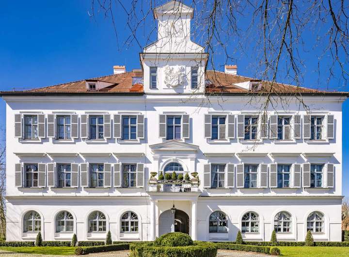 Mitten in einem weitläufigen Schlosspark, umgeben von altem Baumbestand, erhebt sich Schloss Weyhern – ein barockes Juwel mit fast 300 Jahren Geschichte. Das Anwesen verbindet historische Substanz mit modernem Wohnkomfort und zeitloser Eleganz.