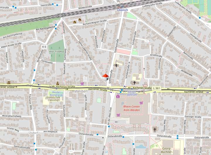 Das Objekt liegt im begehrten Stadtteil Köln-Weiden und ist optimal sowohl an das öffentliche Verkehrsnetz der Region Köln: Bus (ca. 150 m), Straßenbahn (ca. 150 m), S-Bahn (ca. 400 m), als auch an den Autobahnanschluss an die A1 und A4 (ca. 1 km bis zum Autobahnkreuz Köln West) angebunden.