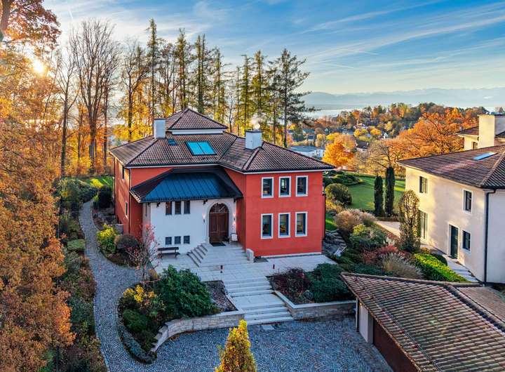 Das Anwesen thront auf einer Sonnenlage oberhalb des Starnberger Sees und bietet dank seiner Position absolute Privatsphäre. Der gepflegte Garten mit großzügigen Terrassen lädt zum Entspannen und Genießen der spektakulären Aussicht ein.