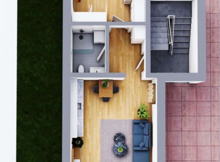 WE 1 – 46,48 m² Wohnfläche + Terrasse 8,09 m²