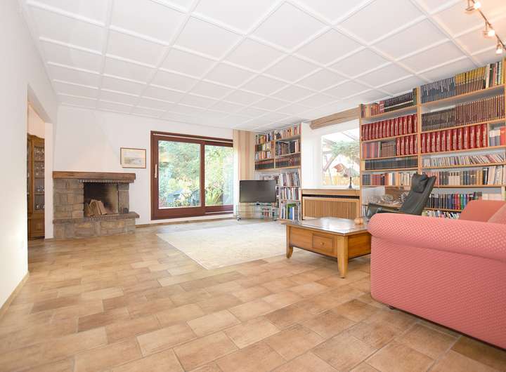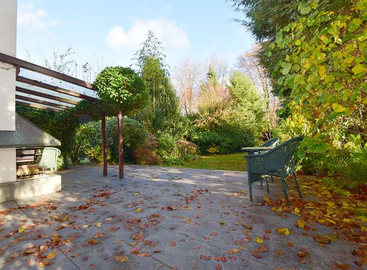 Große, erneuerte Terrassenflächen mit Außenkamin, zum Teil überdacht, und eine seitlich am Haus angeordnete "Wintergarten-Bar" unterstreichen den individuellen Charakter des Hauses.