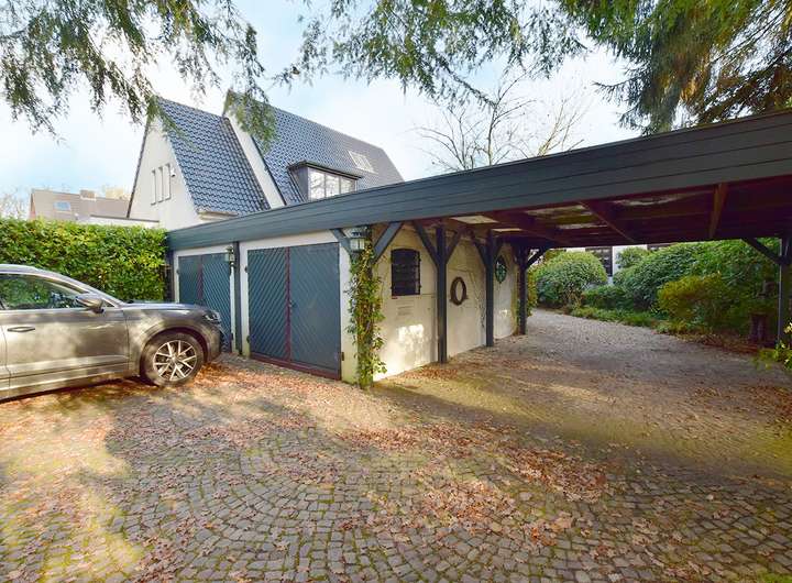 Vorn auf dem Grundstück steht - von der Straße uneinsehbar - ein massiv gebautes Einzelhaus mit rund 157 m² Wohnfläche, davor zwei Garagen und ein großer Carport. Im letzten Gartendrittel finden Sie einen Außenpool und ein erst 2010 neu errichtetes, hochwertiges Blockhaus mit Sauna.