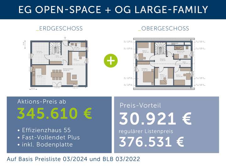 Diesem Angebot liegt die beliebte Schwabenhaus-Ausbaustufe "Fast-Vollendet Plus" zugrunde. Diese kann selbstverständlich noch entsprechend Ihrer geplanten Eigenleistungen angepasst werden.