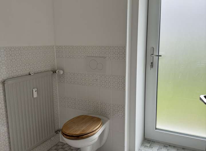 Die Räume haben gepflegte Fliesen und Laminatböden. Das Bad verfügt über eine Wanne und eine ebenerdige/barrierefreie Dusche. Im Bad ist Platz für eine WM und ein Trockner.