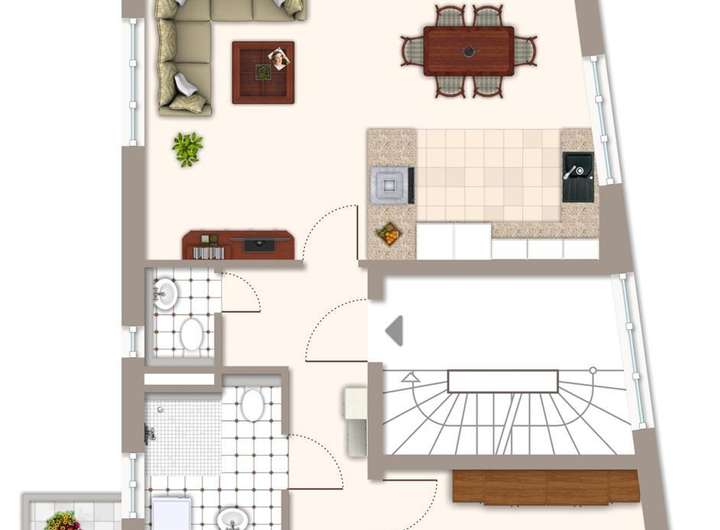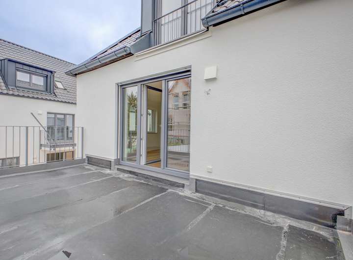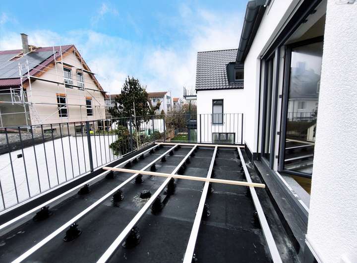 •Große Dachterrasse mit Doppelflügeltüre und Holzbelag