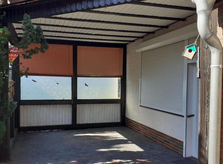 Vom Wohnbereich aus gelangt man direkt auf die überdachte Terrasse und in den gepflegten Garten.
