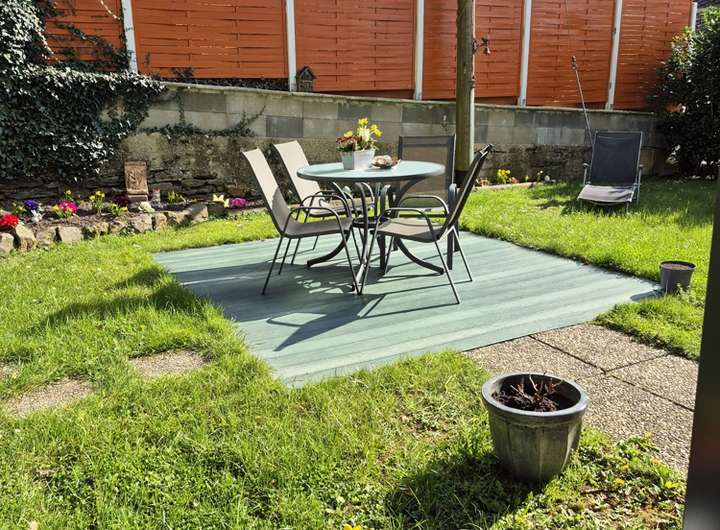 - zusätzlicher Anbau einer Terrasse und Ausgang zum Garten aus der Dachgeschosswohnung ist genehmigt, nur noch nicht gebaut