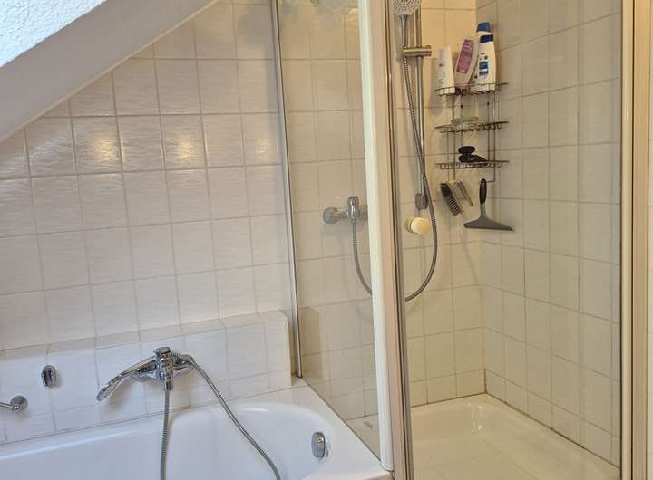 - Wohnung DG: 4 ZKB, Gäste-WC, Gartenhaus, Gartenanteil, 2 Stellplätze (ca. 95,04 m² Wfl., aktuell 700 Euro KM, diese WEH wird ab Januar 2026 neu vermietet)