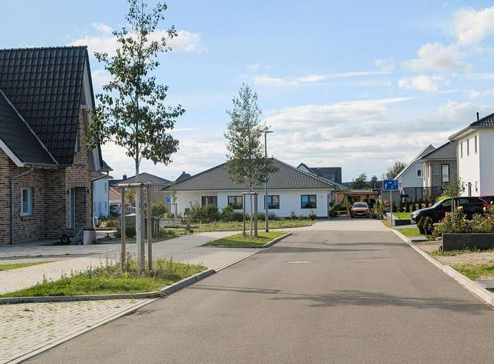 Die Lage ist ganz besonders bei Familien sehr beliebt. Kita und Spielplatz finden sich innerhalb des als Tempo-30 Zone ausgewiesenen Neubaugebietes.
