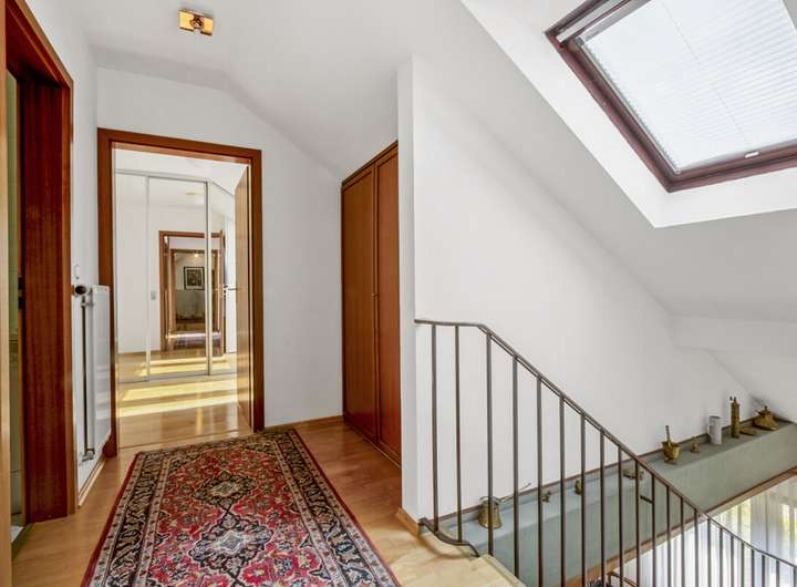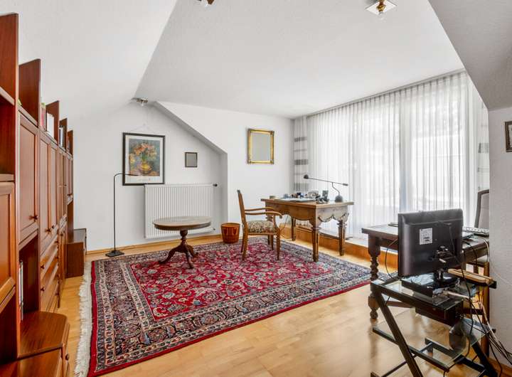 Das Dachgeschoss wurde 1988 aufgestockt und ausgebaut. Es beherbergt zwei weitere Schlafzimmer, ein Duschbad und eine große Dachterrasse – perfekt, um zusätzliche Rückzugsorte für die Familie zu schaffen.