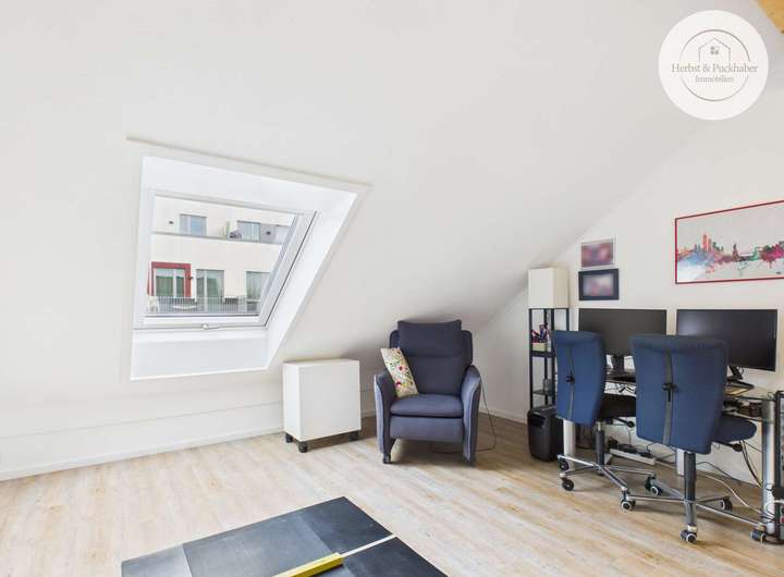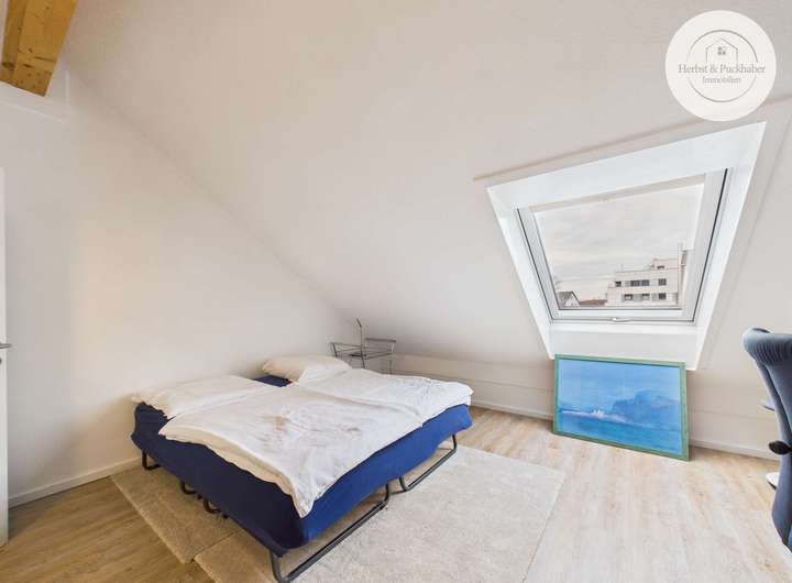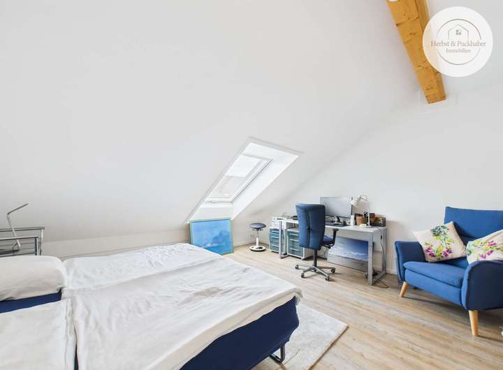 Das Dachgeschoss beeindruckt mit zwei weiteren weitläufigen Zimmern. Diese eignen sich hervorragend für ein luxuriöses Elternschlafzimmer, ein Studio oder einen ruhigen Arbeitsbereich. Ein zweites innenliegendes Duschbad rundet diese Ebene ab.