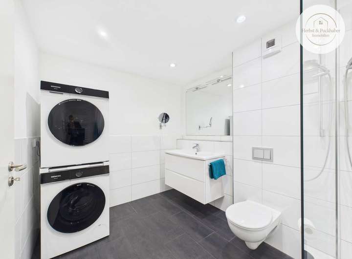 Im Erdgeschoss öffnet sich ein heller Wohn und Essbereich mit großen Fensterflächen, die viel Tageslicht einlassen und eine angenehme Atmosphäre erzeugen. Die offene, moderne Küche fügt sich harmonisch ein und bietet ideale Voraussetzungen für genussvolle Kochmomente. Ein Gäste WC sowie ein praktischer Abstellbereich unter der Treppe ergänzen die Etage.