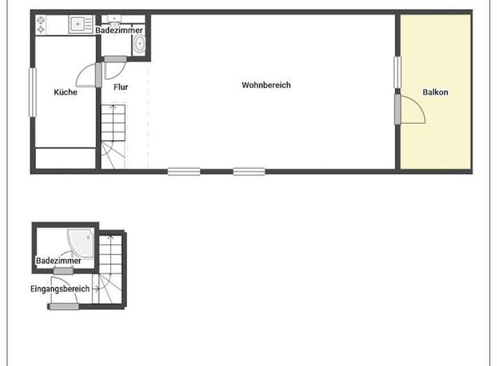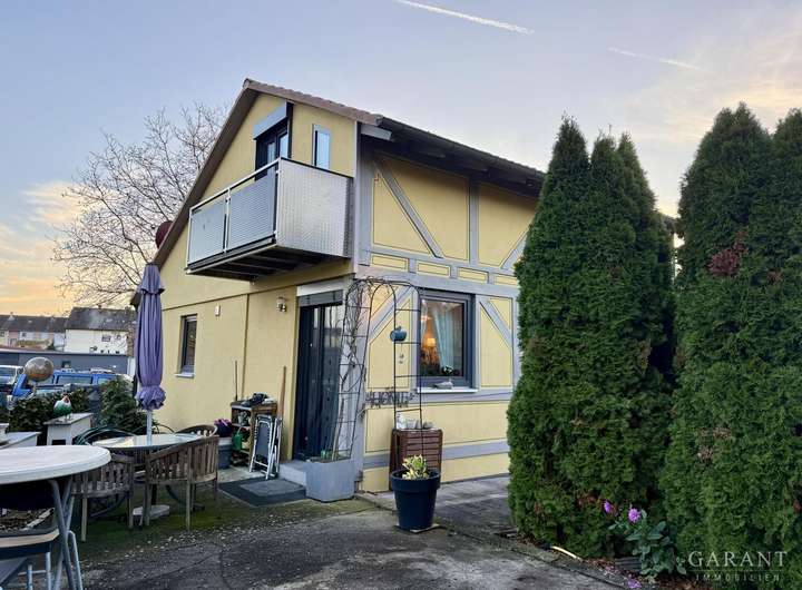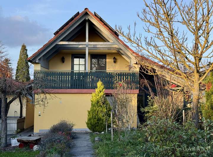 - ca. 90 qm Wohnfläche: EG mit Diele, Essbereich, Küche, Gäste-WC und HWR; DG mit offenem Wohn-/Schlafbereich, Badezimmer und Balkon