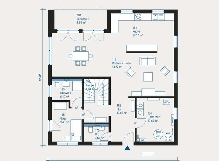 Für modernen Wohnkomfort sorgen bei deinem Haus eine energieeffiziente Luft-Wasser-Wärmepumpe, eine kontrollierte Be- und Entlüftungsanlage mit Wärmerückgewinnung sowie unser durchdachtes Heizungs- und Elektropaket. Auch die Haustechnik inklusive Rohrleitungen ist bereits vollständig enthalten.