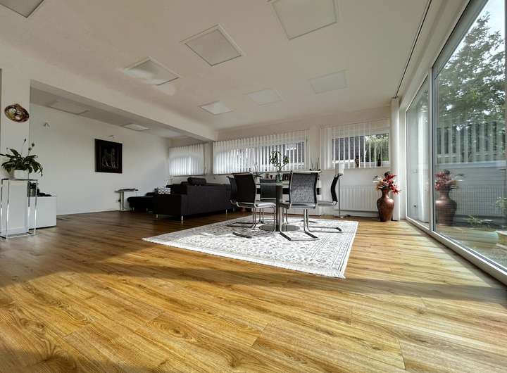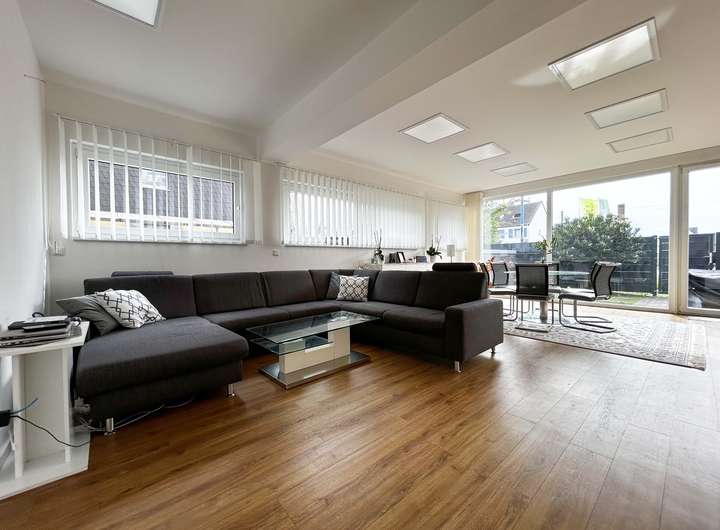 + Offener Wohn-/Essbereich mit breiter Fensterfront und direktem Zugang zur Terrasse