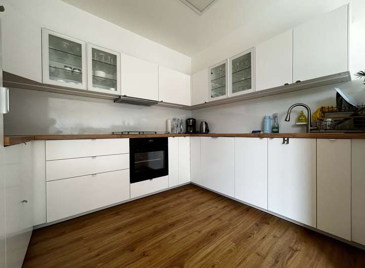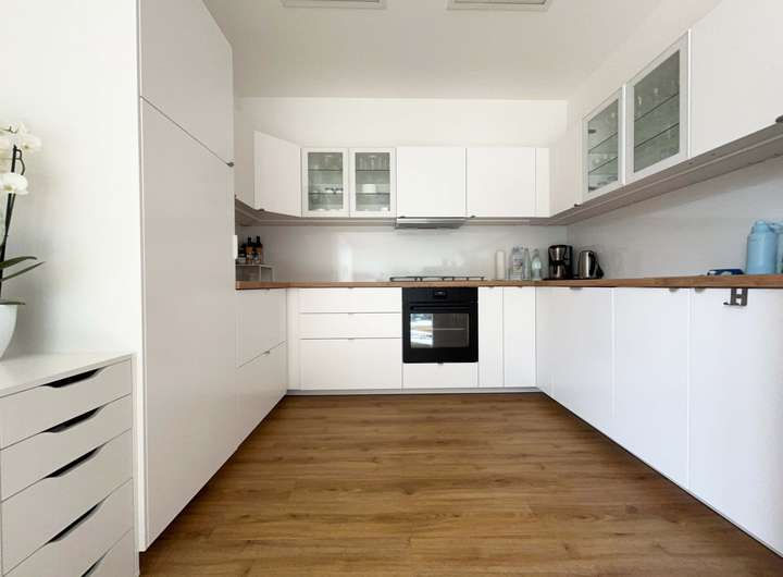 + Küche mit kurzem Weg zum Wohnraum und praktischer Anordnung der Arbeitsflächen