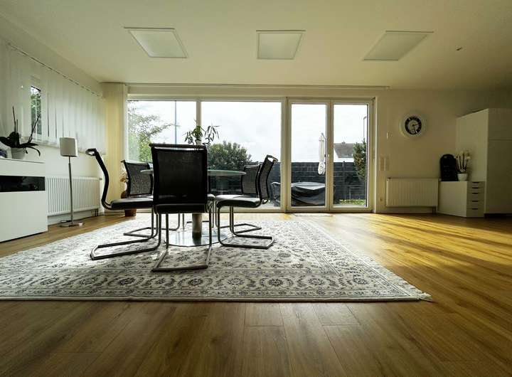 Bei Öffnung der Wohnungstür empfängt Sie das Gefühl: "Ich bin Zuhause". Von hier geht es direkt weiter in den offenen Wohn- und Essbereich. Ein besonderer Raum für gemeinsame Essen mit Ihren Lieben, für Abende mit Freunden und für stille Lesestunden. Die Sonne taucht den Raum in wechselndes Licht. Dank der modernen 3 fach-Verglasung sind Sie bestens vor Wärme geschützt.