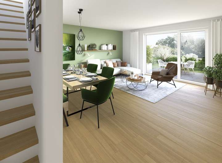 Durch die Qualität Ihres Hauses als Effizienzhaus mit einer Energieeffizienzklasse A+ und Ihrer eigenen Luft-Wasser-Wärmepumpe mit PV-Anlage und Fußbodenheizung leisten Sie mit dem Einzug in das neue Zuhause einen positiven Beitrag für Ihre Umwelt und sparen Energiekosten. Ökologisches Heizen mit Umweltwärme – 100 % regenerativ und ohne fossile Brennstoffe.