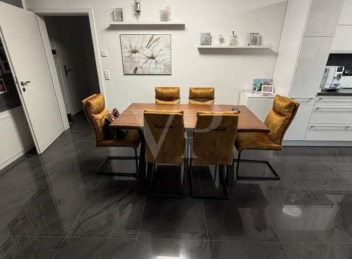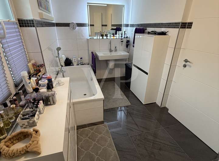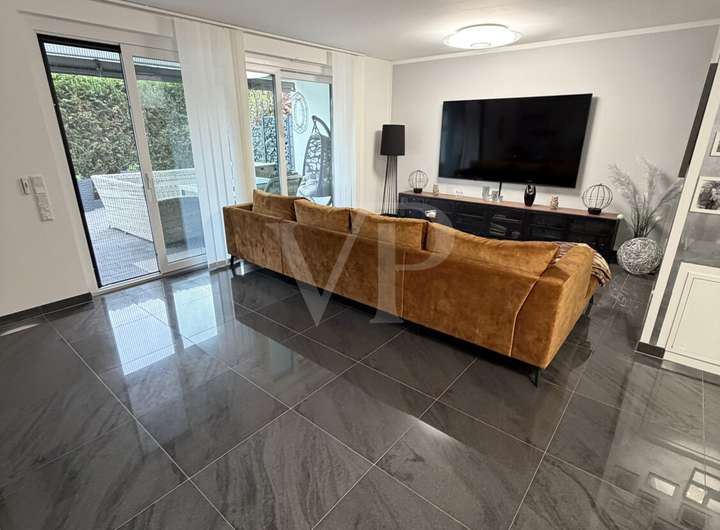 Diese ansprechende Erdgeschosswohnung aus dem Baujahr 2016 befindet sich in einem neuwertigen Zustand und überzeugt durch ihre moderne Architektur und durchdachte Raumaufteilung. Auf rund 90 m² Wohnfläche bietet diese Immobilie ein komfortables Zuhause für Paare, kleine Familien oder anspruchsvolle Singles, die Wert auf hochwertige Ausstattung und angenehmes Wohnen legen.Bereits beim Betreten der Wohnung empfängt Sie ein einladendes Entrée mit ausreichend Platz für eine Garderobe. Von hier gelangen Sie in den hellen Wohn- und Essbereich, der durch großzügige Fensterflächen eine angenehme Lichtstimmung schafft. Die offene Raumgestaltung sorgt für ein angenehmes Wohngefühl und ermöglicht vielfältige Einrichtungsmöglichkeiten. Im angrenzenden Küchenbereich findet sich ausreichend Platz für eine moderne Einbauküche. Die Räumlichkeiten sind mit hochwertigen Bodenbelägen ausgestattet, die sowohl stilvoll als auch pflegeleicht sind.Insgesamt verfügt die Wohnung über drei gut geschnittene Zimmer, darunter zwei Schlafzimmer, die vielseitig nutzbar sind – ob als klassisches Hauptschlafzimmer, Kinderzimmer oder Arbeitszimmer. Beide Schlafzimmer sind dank großer Fenster lichtdurchflutet und bieten ausreichend Stellfläche für Schränke und weitere Möbel. Besonders hervorzuheben ist der komfortable Grundriss, der Privatsphäre zwischen den Schlafzimmern und dem Wohnbereich gewährleistet.Die beiden modernen Badezimmer überzeugen durch hochwertige Sanitärobjekte und eine geschmackvolle Ausstattung. Das Hauptbad verfügt über eine Badewanne, eine separate Dusche, ein WC sowie einen Waschtisch mit großzügigem Spiegel. Das zweite Bad ist mit einem weiteren WC und einem Handwaschbecken ausgestattet und fungiert als Gäste-WC. Beide Bäder sind elegant gefliest und bieten viel Komfort für den Alltag.