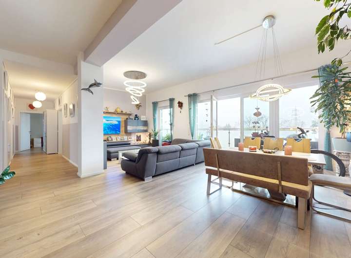 Ein weiteres Highlight ist der flexible Grundriss: Da die Innenwände nicht tragend sind, lässt sich die Raumaufteilung individuell anpassen – ob großzügiges Loft, Familienwohnung oder kombinierter Wohn- und Arbeitsbereich.