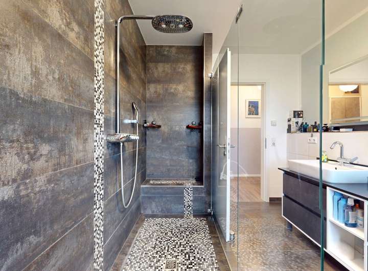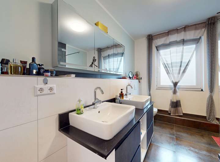 - Tageslichtbad mit ebenerdiger Dusche und Doppelwaschbecken