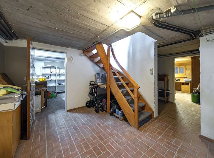 Besonderheiten: ebenerdiger Grundriss, Teilunterkellerung, Garage, Ausbaureserve im Spitzboden, Einbauküche, Sichtmauerwerk.