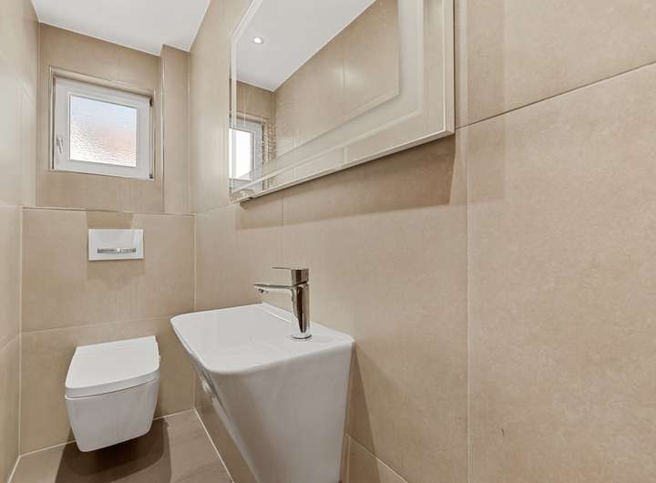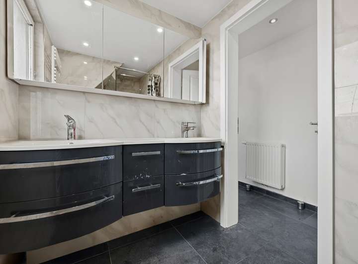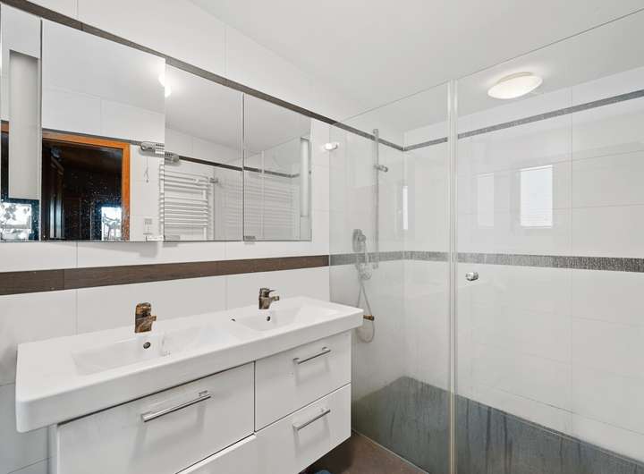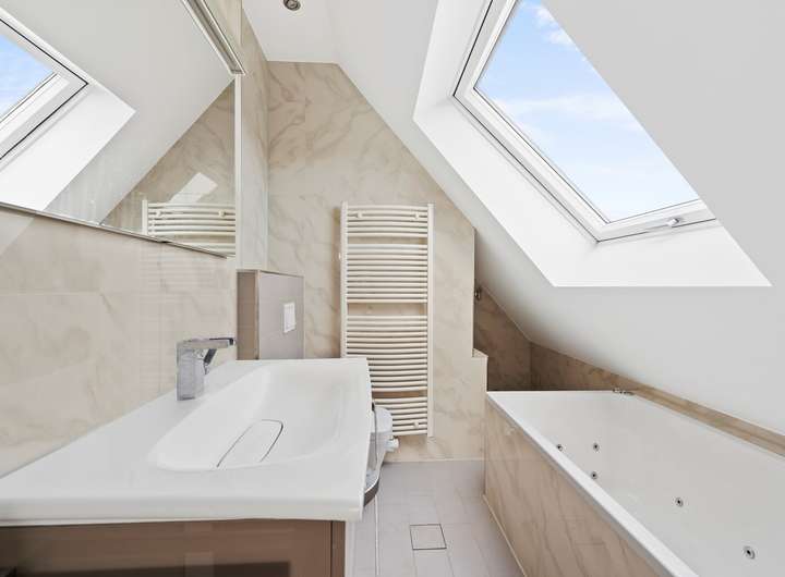 Die hochwertige Einbauküche mit Granitoberflächen und modernen Elektrogeräten ist im Kaufpreis enthalten. Insgesamt stehen drei moderne Tageslichtbäder zur Verfügung, teilweise von der Marke Villeroy & Boch. Im Dachgeschoss befindet sich zudem eine hochwertige Whirlpool-Badewanne.