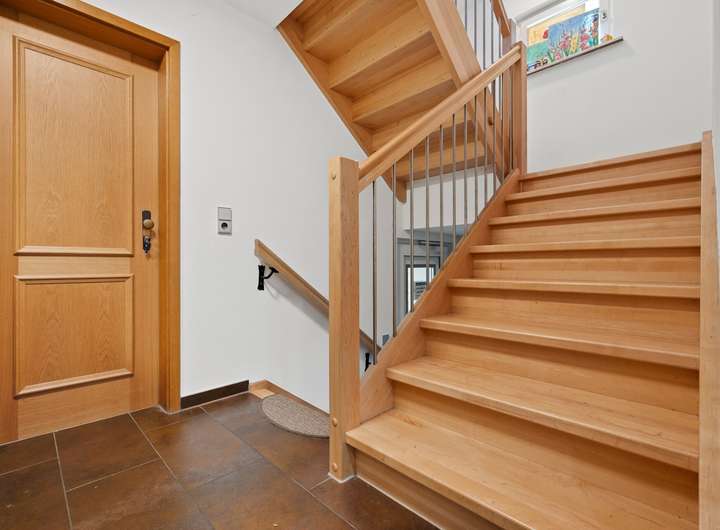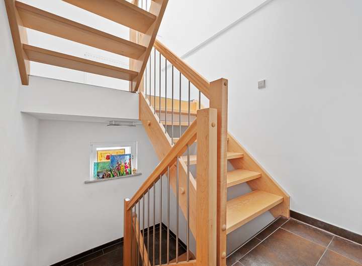 Das Haus erstreckt sich über Untergeschoss, Erdgeschoss, Obergeschoss und Dachgeschoss. Die durchdachte Grundrissgestaltung vermittelt ein großzügiges Raumgefühl, das durch die hochwertigen Bodenbeläge harmonisch ergänzt wird. Dank der vollständigen Unterkellerung steht reichlich Wohn- und Nutzfläche zur Verfügung.