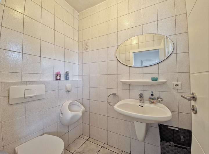 Dieses vielseitige Wohn- und Geschäftshaus aus dem Jahr 1964 zeigt sich dank einer umfassenden Sanierung im Jahr 1988 in einem sehr soliden, gepflegten und dauerhaft wertbeständigen Zustand. Die erneuerte Klinkerfassade und das neue Dach sorgen für eine massive Gebäudehülle mit außergewöhnlich starken Außenwänden – ein Pluspunkt für Energieeffizienz, Klimakomfort und Langlebigkeit.