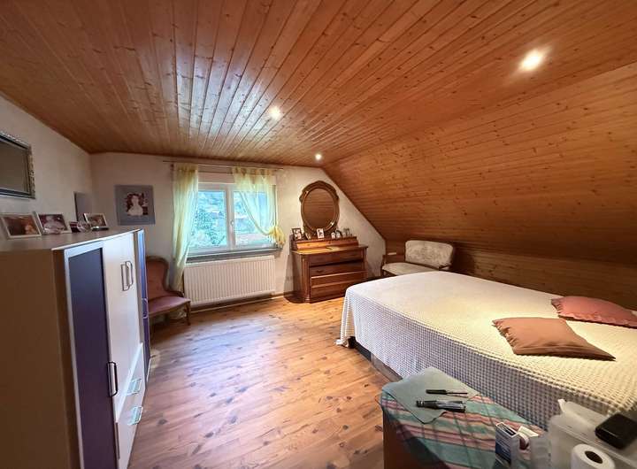 Sanierungen: Dach 1996, Fenster teils 1980/1996, Dachfenster 2023 neu, Niedertemperatur-Ölheizung (kein Austausch nötig).