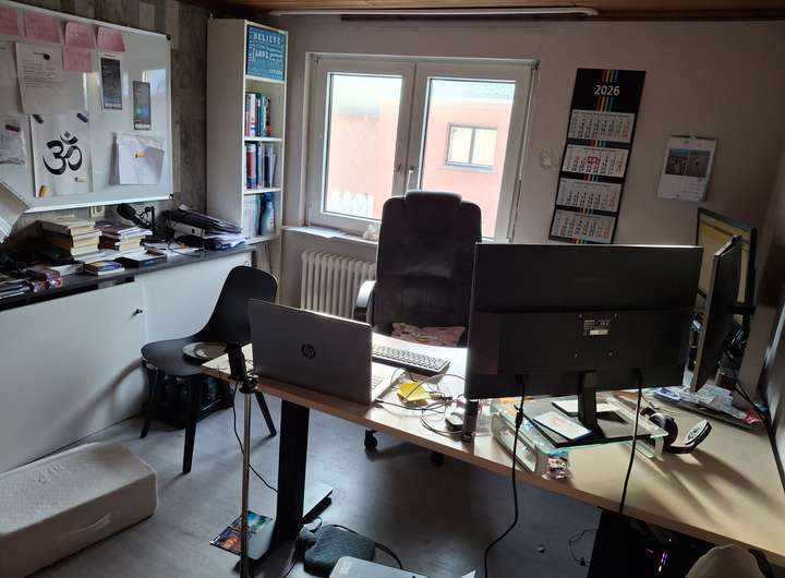 Im Obergeschoss liegen das Schlafzimmer mit Balkon und anschließendem Ankleidezimmer, ein kleines Büro- oder Babyzimmer, ein separates WC sowie ein Bad mit Badewanne. Ein weiterer kleiner Raum eignet sich als Abstellfläche oder kompaktes Homeoffice. Drei zusätzliche Zimmer stehen als Schlaf-, Kinder- oder Gästezimmer zur Verfügung, eines davon als Durchgangszimmer.