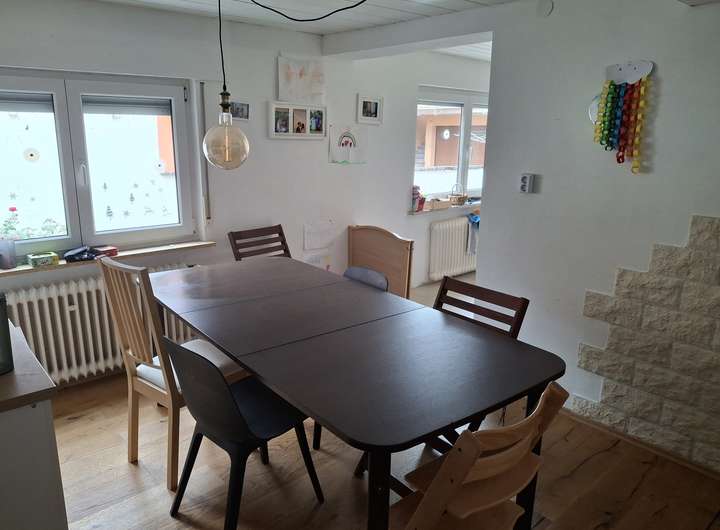 Dieses Einfamilienhaus bietet großzügigen Wohnraum, eine durchdachte Aufteilung und vielfältige Nutzungsmöglichkeiten. Nach dem Windfang gelangt man in den Flur. Rechts liegt das helle Wohnzimmer, links das Esszimmer mit angrenzender halboffener Küche, von der aus ebenfalls der Flur erreichbar ist. Auf dieser Etage befinden sich zudem zwei Abstellräume, eine Waschküche sowie ein Duschbad mit WC. Eine Treppe führt in den teilunterkellerten Bereich.